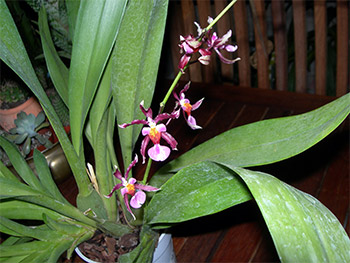 Cercavo di dare loro un nome, ma ancora adesso ho molte incertezze, considerando che sono ibridi direi che una è un Oncidium (profumatissima) e l’altra una Cambria o Miltonia.